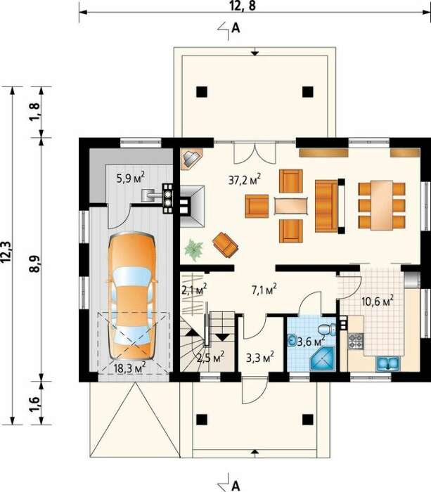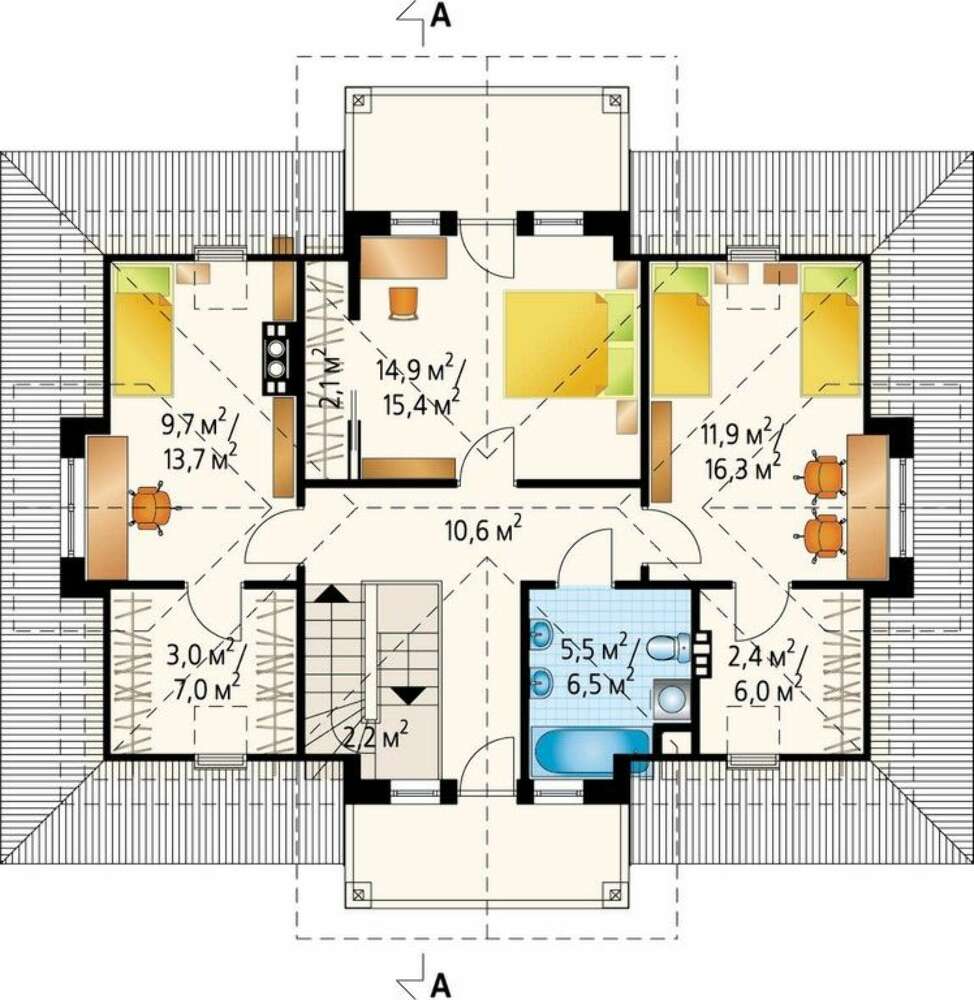 Архитектурный проект дома с мансардой 12 на 12 м 4M3286