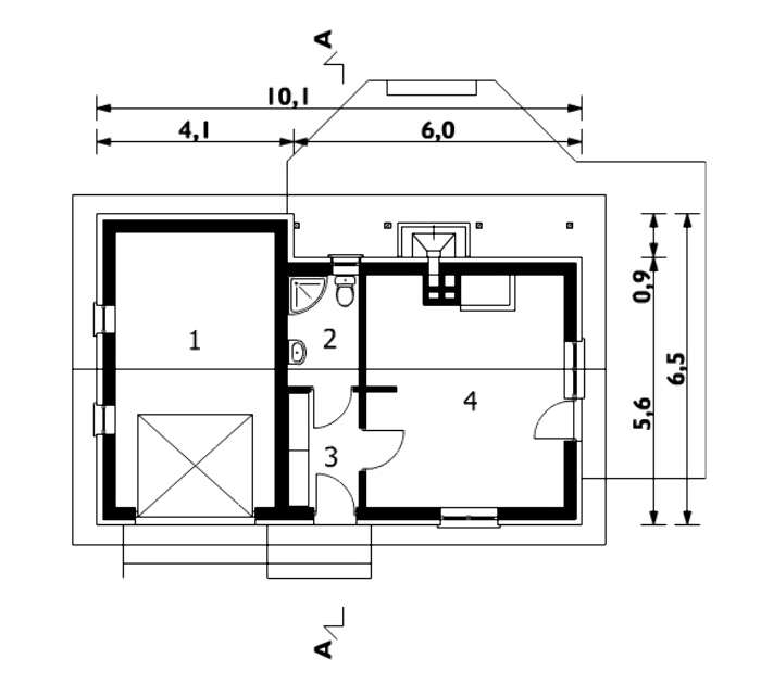 • разрезы - показывают все элементы здания после разреза вдоль и поперек от конька крыши до фундаментов, т.е. слои пола, перекрытий и кровли;