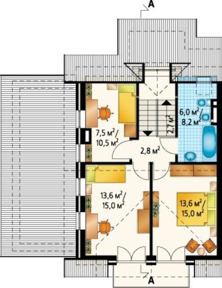 | Угол наклона кровли: | 38°, 28 ° |