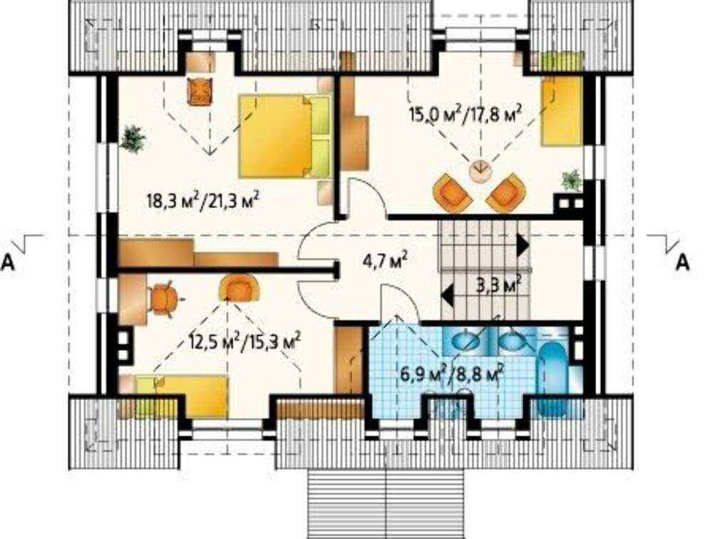 • фасады - показывают четкий вид дома с фронтальной стороны, с тыльной стороны и c боковых сторон;