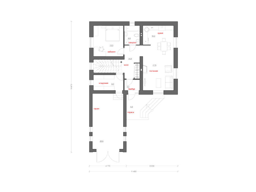 • 4M847 Коттедж с мансардой и с фронтальным гаражом