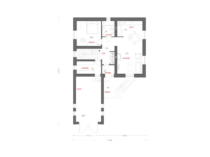 Проект содержит три раздела – Архитектурный, Конструктивный и Инженерный (Водоснабжение, Отопление, Вентиляция, Канализация, Электроснабжение) + Пояснительная записка