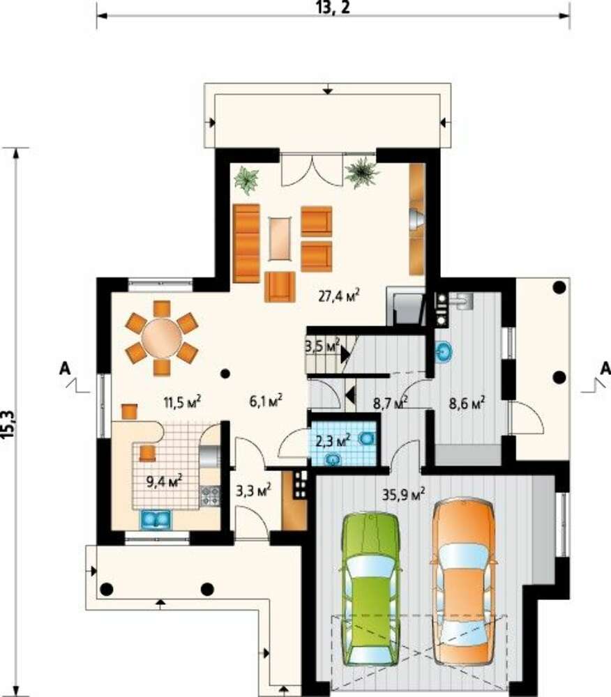 Коттедж с шестью комнатами с гаражом на 2е машины