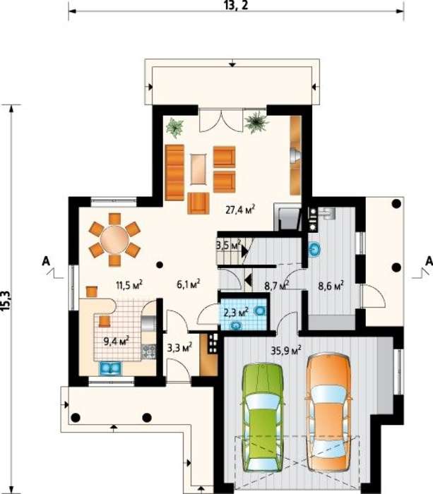 • 4M3612 Коттедж с шестью комнатами с гаражом на 2е машины