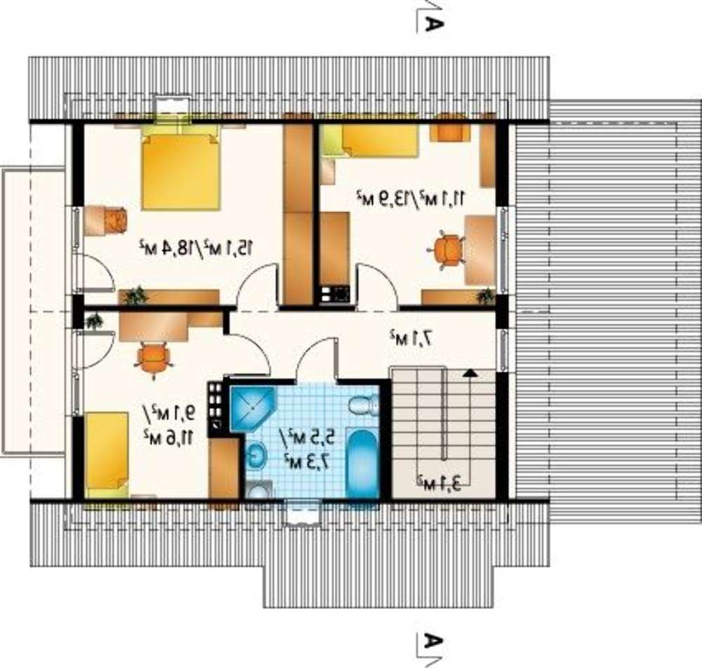 Второй этаж:: 47.9 m² / 61.4 m²
