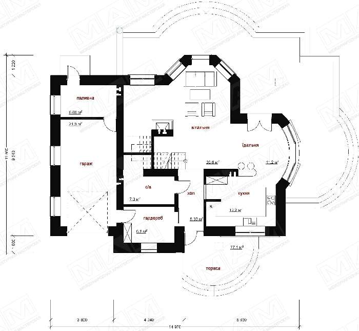 | Кровля: | керамическая черепица, металлочерепица, цементно-песчаная черепица |