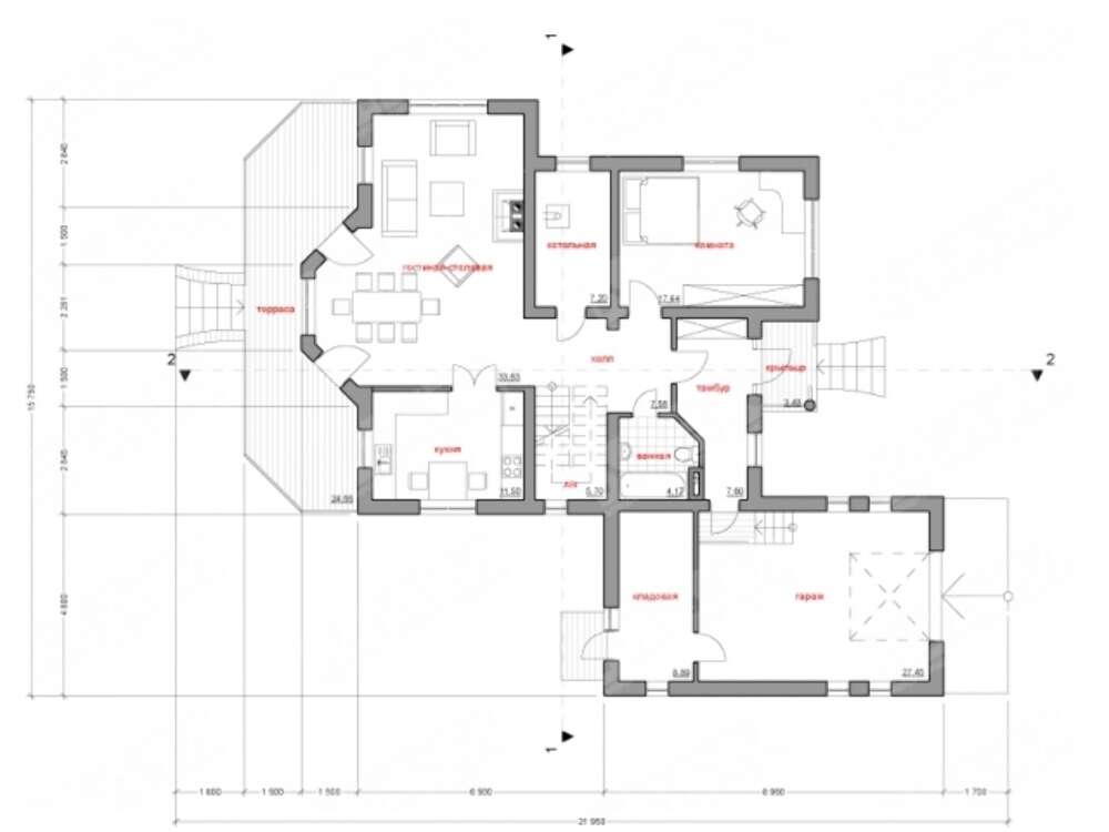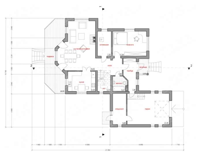 Проект содержит три раздела – Архитектурный, Конструктивный и Инженерный (Водоснабжение, Отопление, Вентиляция, Канализация, Электроснабжение) + Пояснительная записка