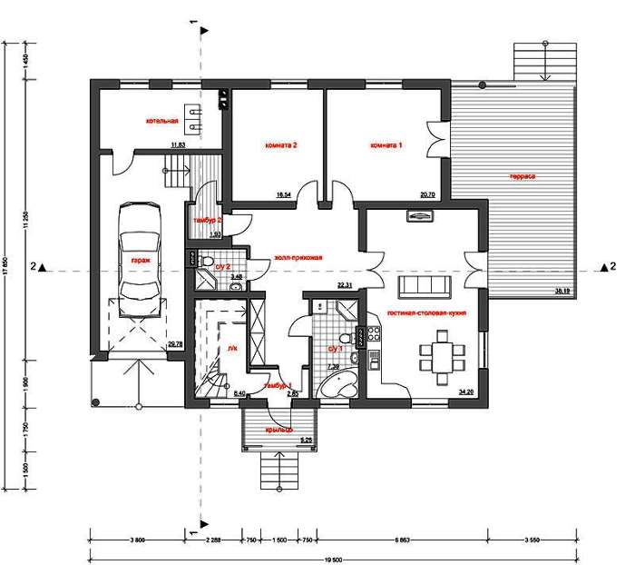 Проект содержит три раздела – Архитектурный, Конструктивный и Инженерный (Водоснабжение, Отопление, Вентиляция, Канализация, Электроснабжение) + Пояснительная записка