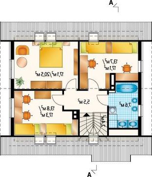 • план первого и остальных этажей – показывает размещение отдельных помещений и их размеры, площадь, размещение стен, размещение дверных и оконных проемов, кухонных и санитарных установок;