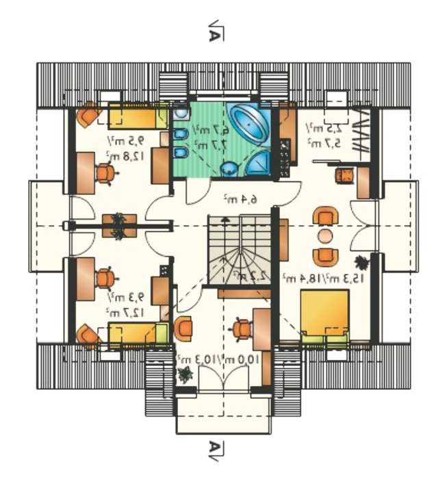 • план первого и остальных этажей – показывает размещение отдельных помещений и их размеры, площадь, размещение стен, размещение дверных и оконных проемов, кухонных и санитарных установок;