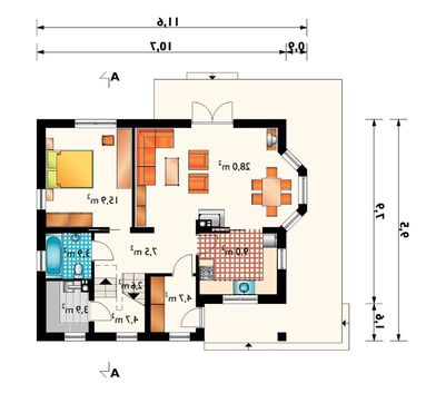 • план первого и остальных этажей – показывает размещение отдельных помещений и их размеры, площадь, размещение стен, размещение дверных и оконных проемов, кухонных и санитарных установок;