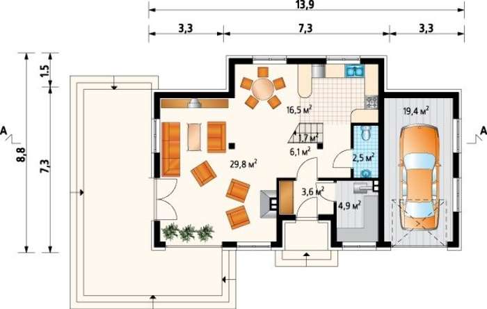 Проект содержит три раздела – Архитектурный, Конструктивный и Инженерный (Водоснабжение, Отопление, Вентиляция, Канализация, Электроснабжение)