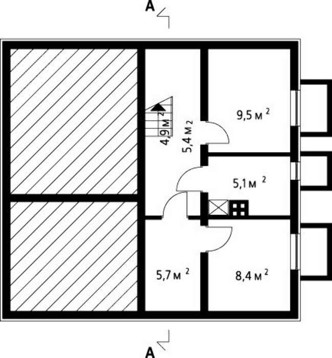 • план первого и остальных этажей – показывает размещение отдельных помещений и их размеры, площадь, размещение стен, размещение дверных и оконных проемов, кухонных и санитарных установок;