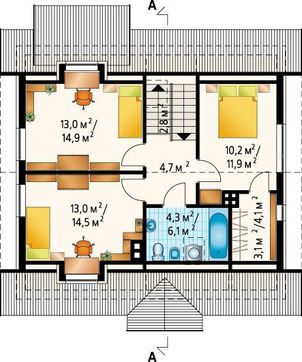 • разрезы - показывают все элементы здания после разреза вдоль и поперек от конька крыши до фундаментов, т.е. слои пола, перекрытий и кровли;