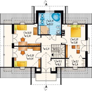 • план первого и остальных этажей – показывает размещение отдельных помещений и их размеры, площадь, размещение стен, размещение дверных и оконных проемов, кухонных и санитарных установок;