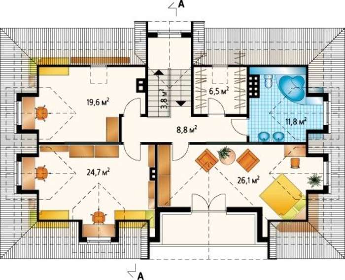 • фасады - показывают четкий вид дома с фронтальной стороны, с тыльной стороны и c боковых сторон;