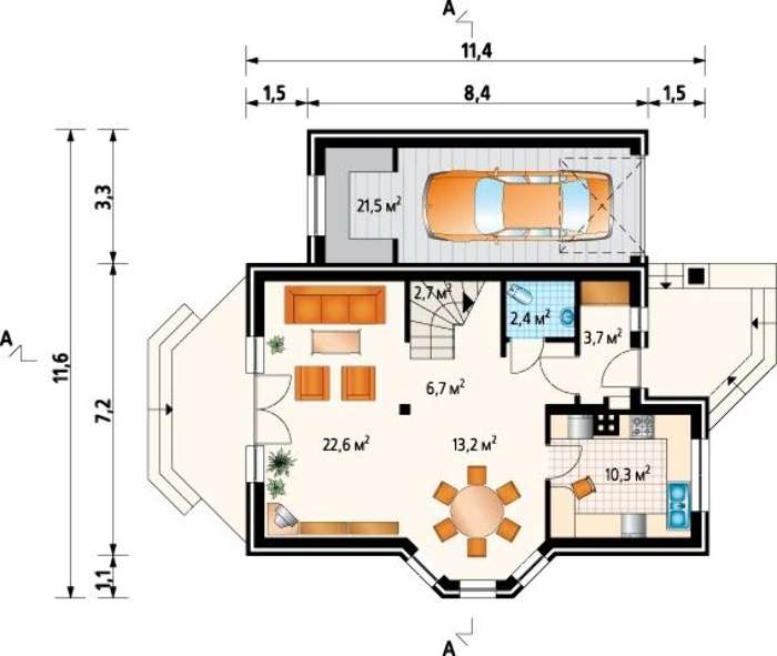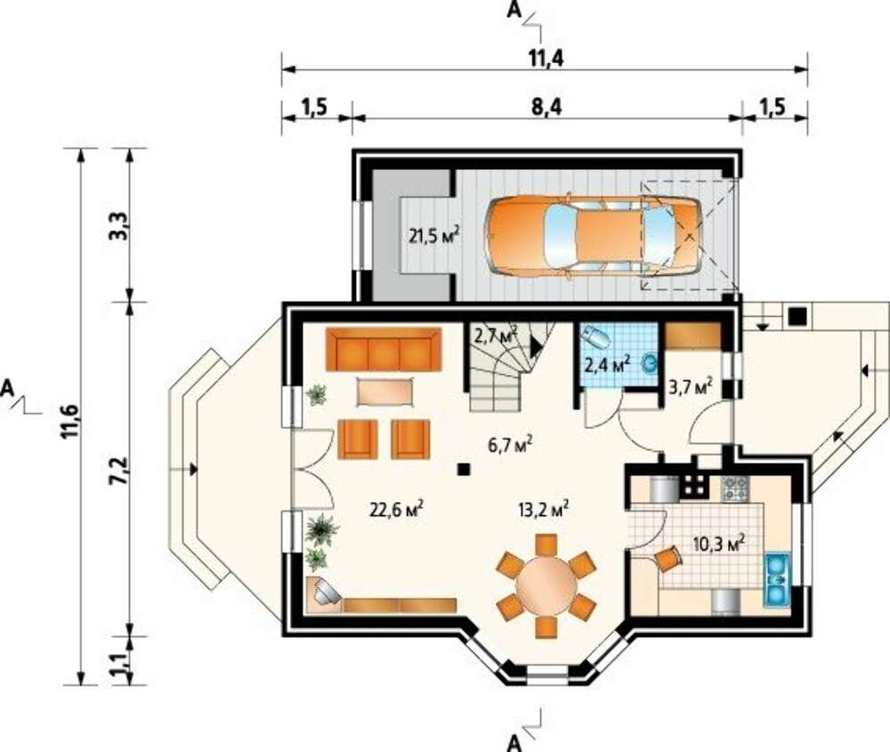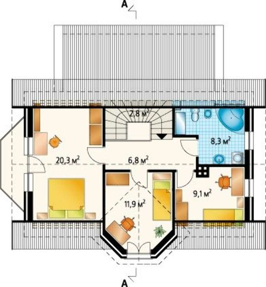 • план первого и остальных этажей – показывает размещение отдельных помещений и их размеры, площадь, размещение стен, размещение дверных и оконных проемов, кухонных и санитарных установок;