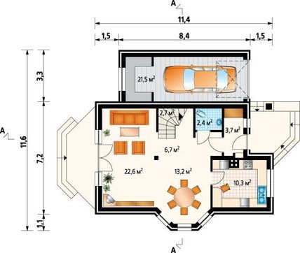 • разрезы - показывают все элементы здания после разреза вдоль и поперек от конька крыши до фундаментов, т.е. слои пола, перекрытий и кровли;