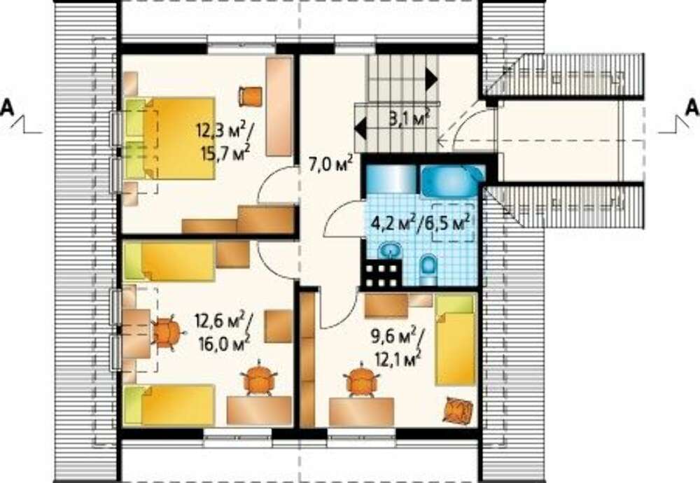 • разрезы - показывают все элементы здания после разреза вдоль и поперек от конька крыши до фундаментов, т.е. слои пола, перекрытий и кровли;