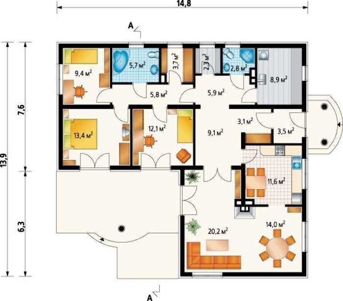 Высота дома:5.90 м
