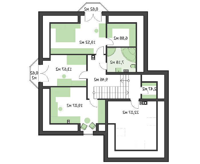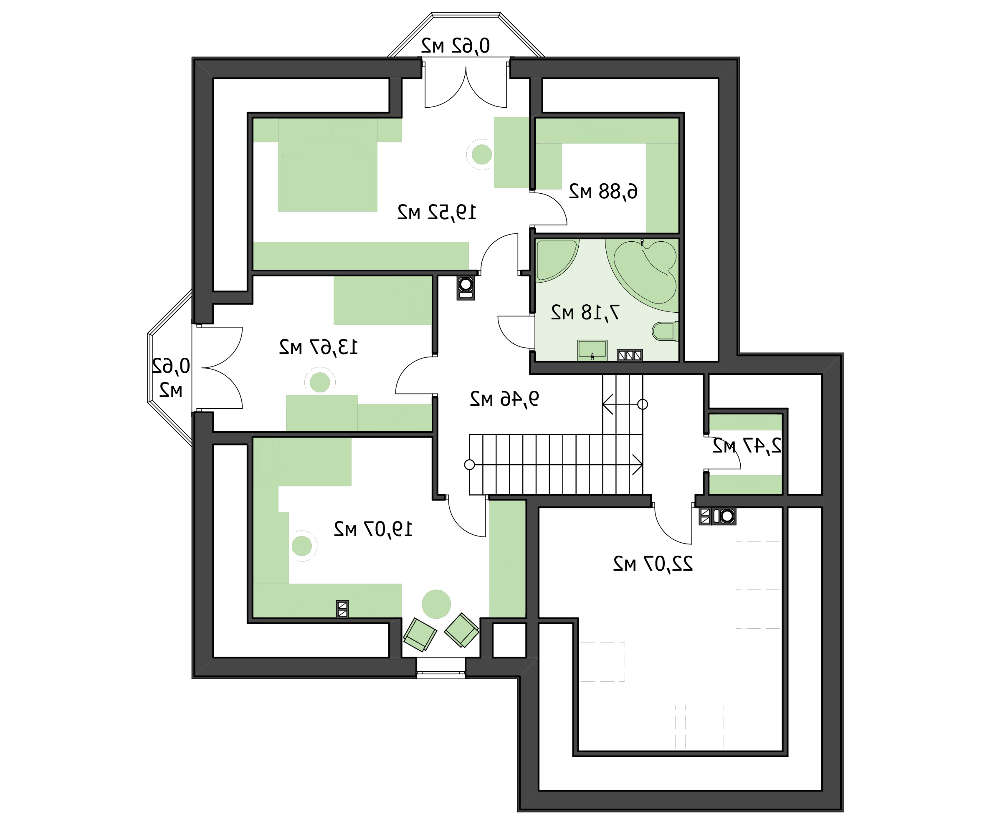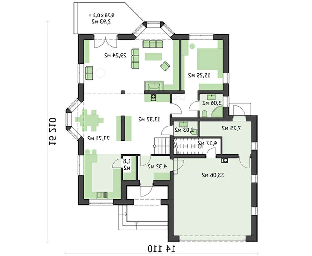 • план первого и остальных этажей – показывает размещение отдельных помещений и их размеры, площадь, размещение стен, размещение дверных и оконных проемов, кухонных и санитарных установок;