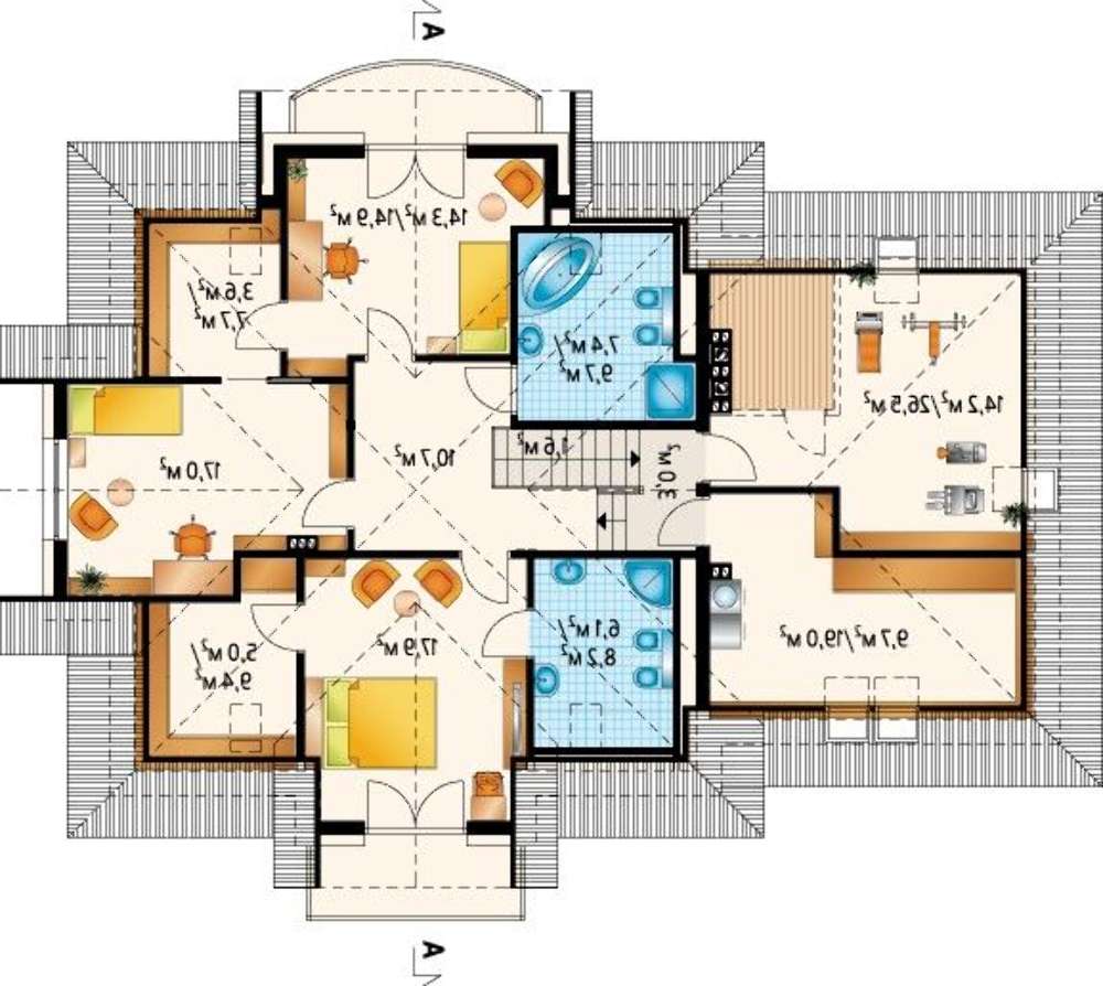 • план первого и остальных этажей – показывает размещение отдельных помещений и их размеры, площадь, размещение стен, размещение дверных и оконных проемов, кухонных и санитарных установок;