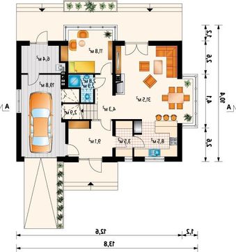 • разрезы - показывают все элементы здания после разреза вдоль и поперек от конька крыши до фундаментов, т.е. слои пола, перекрытий и кровли;