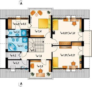 • план первого и остальных этажей – показывает размещение отдельных помещений и их размеры, площадь, размещение стен, размещение дверных и оконных проемов, кухонных и санитарных установок;