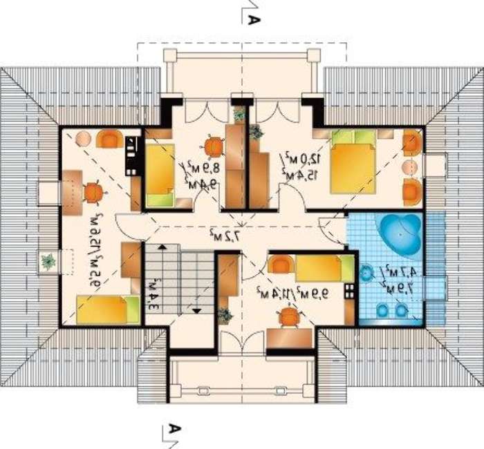 • план кровли - представляет ее форму, размеры, угол уклона скатов, размещение мансардных окон, люкарн, окон верхнего света и спускных труб, показывает размещение дымоходов и информирует о способе отвода воды: о размещении и размерах водосточных труб;