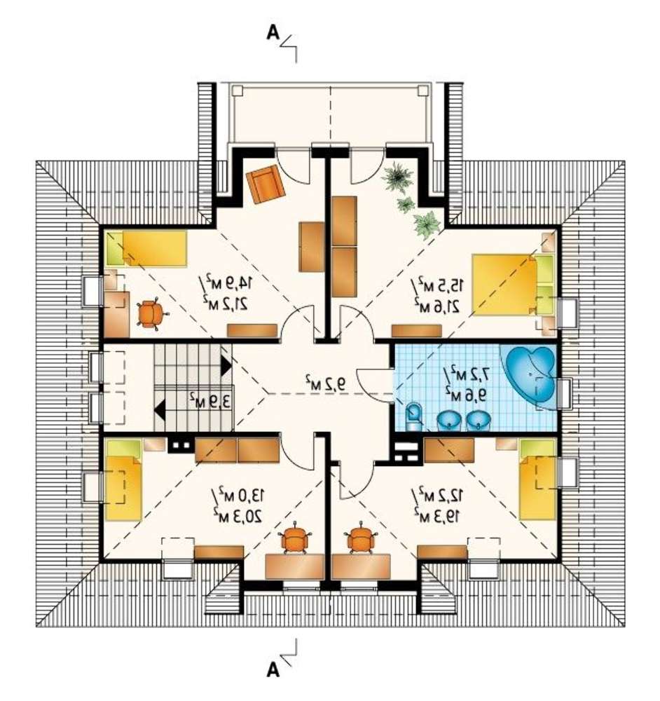 Оригинальный дом с четырехскатной кровлей и гаражом на одно авто 4M3369