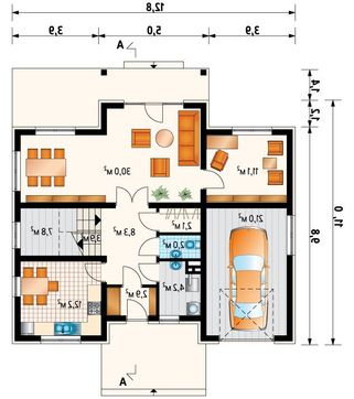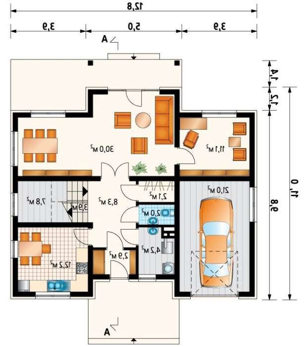 • 4M3369 Оригинальный дом с четырехскатной кровлей и гаражом на одно авто