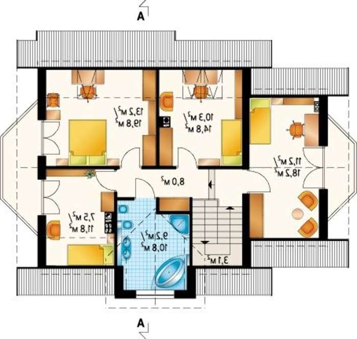 • 4M3166b Оригинальный двухэтажный коттедж с эркерами и балконами