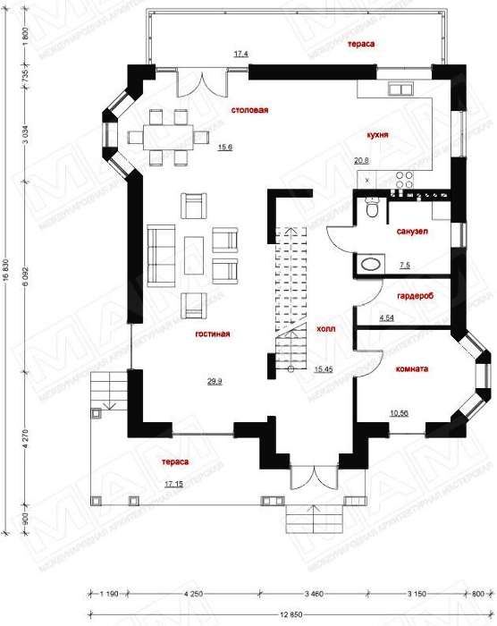 | Кровля: | керамическая черепица, металлочерепица, цементно-песчаная черепица |