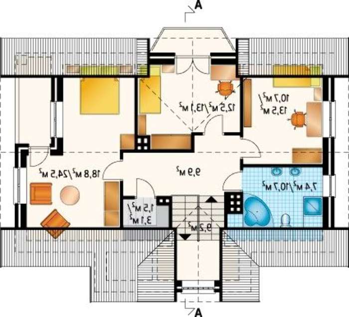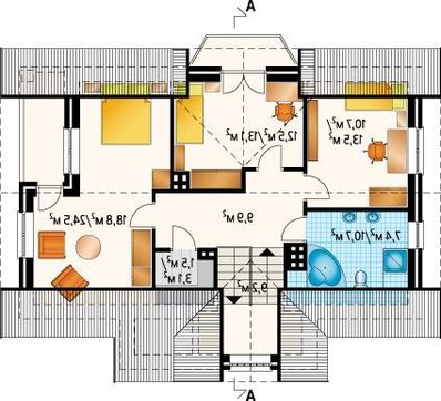 • план первого и остальных этажей – показывает размещение отдельных помещений и их размеры, площадь, размещение стен, размещение дверных и оконных проемов, кухонных и санитарных установок;