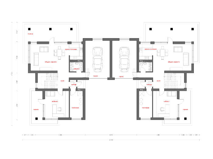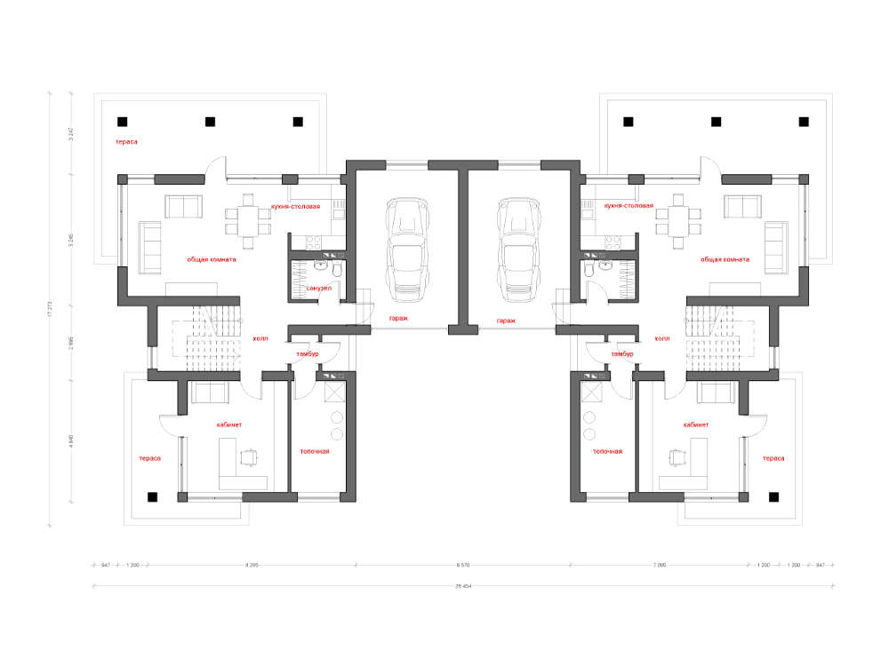 Проект содержит три раздела – Архитектурный, Конструктивный и Инженерный (Водоснабжение, Отопление, Вентиляция, Канализация, Электроснабжение) + Пояснительная записка