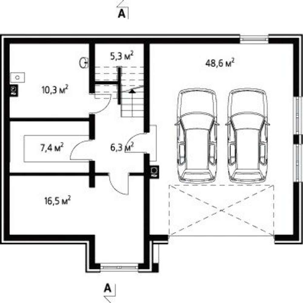 Проект дома с гаражом на две машины в цокольном этаже