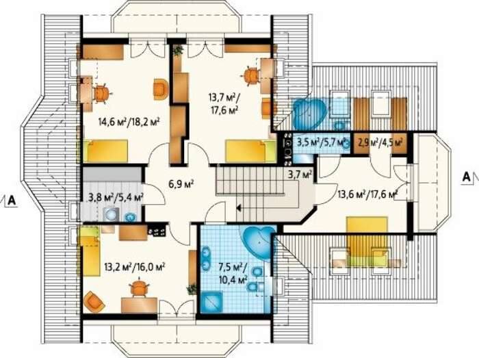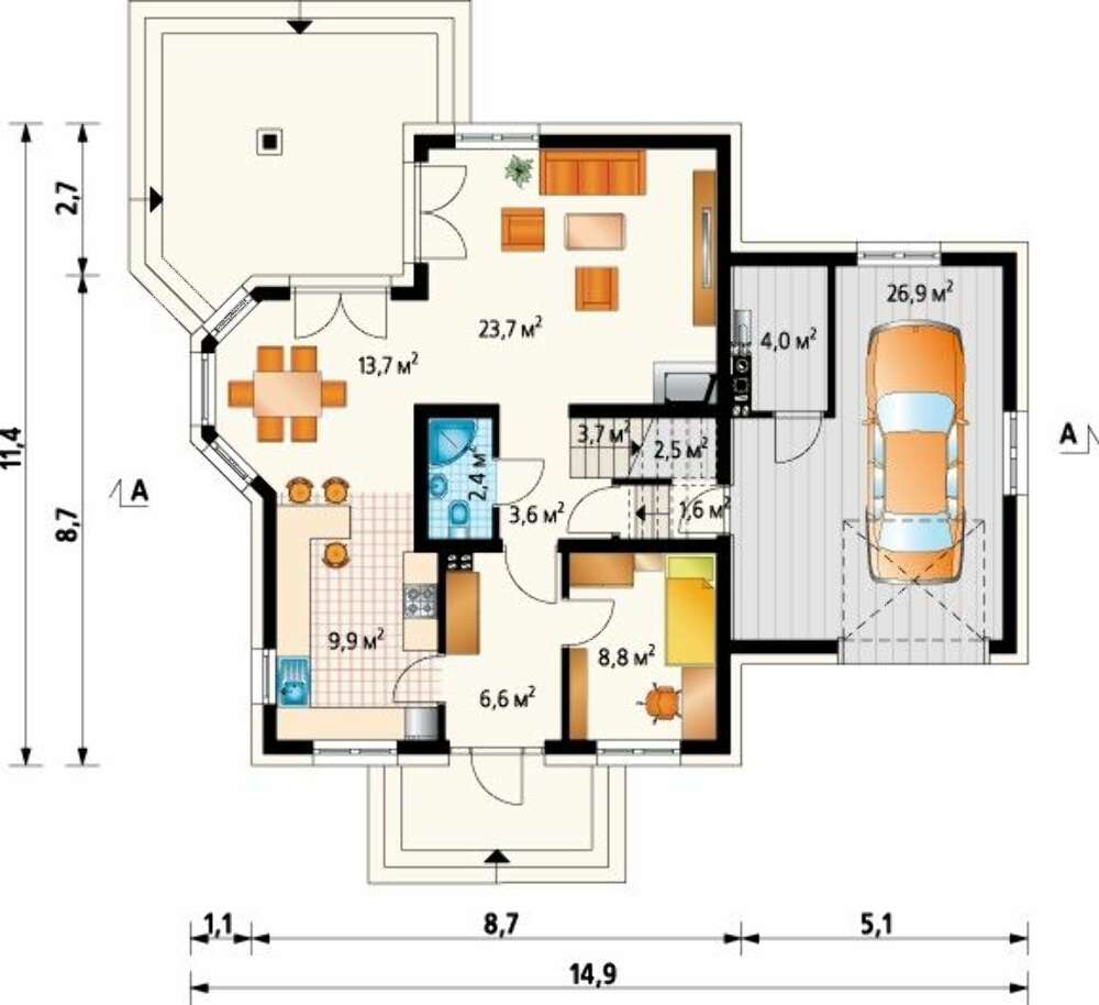 Проект дома с мансардой 11 на 9 площадью более 200 m²