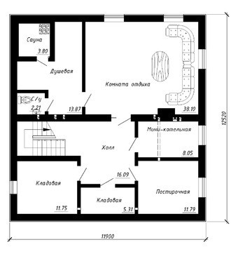 Проект содержит три раздела – Архитектурный, Конструктивный и Инженерный (Водоснабжение, Отопление, Вентиляция, Канализация, Электроснабжение) + Пояснительная записка