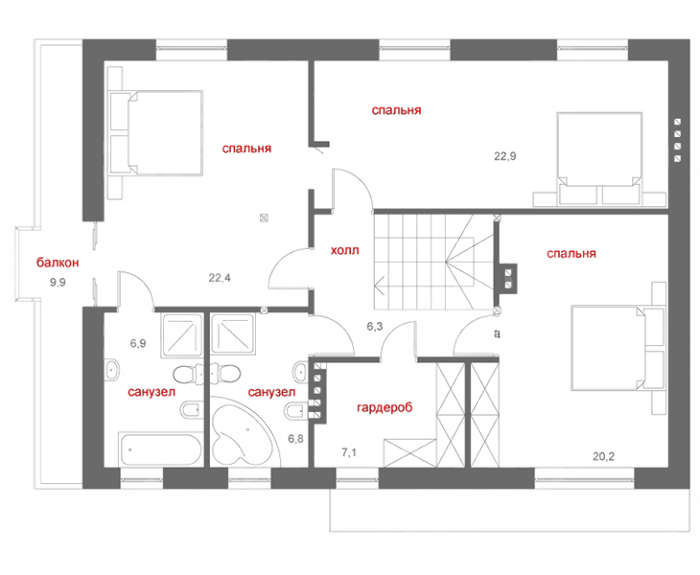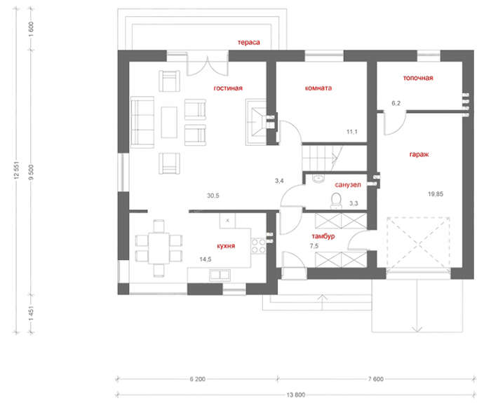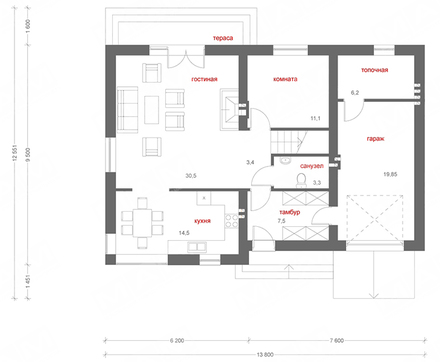 Проект содержит три раздела – Архитектурный, Конструктивный и Инженерный (Водоснабжение, Отопление, Вентиляция, Канализация, Электроснабжение) + Пояснительная записка