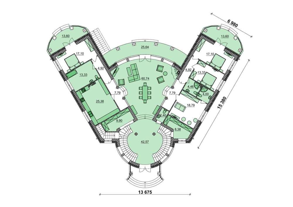 Проект содержит три раздела – Архитектурный, Конструктивный и Инженерный (Водоснабжение, Отопление, Вентиляция, Канализация, Электроснабжение) + Пояснительная записка