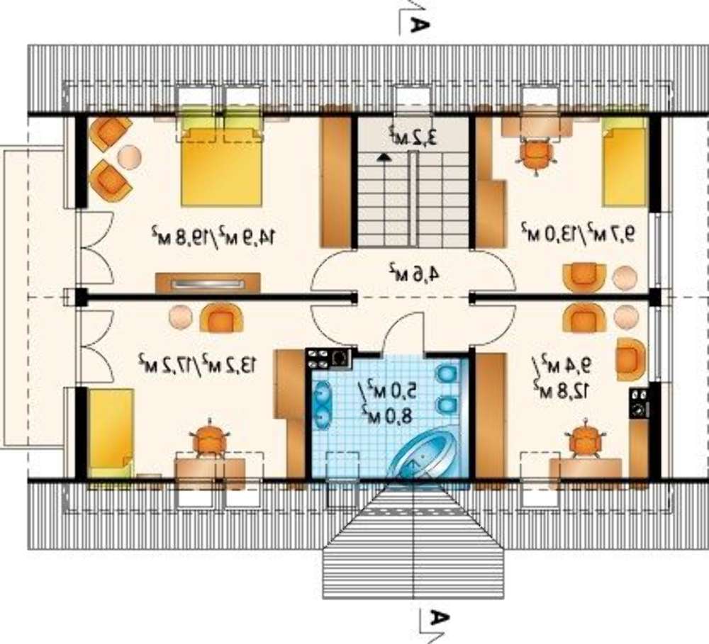 • план первого и остальных этажей – показывает размещение отдельных помещений и их размеры, площадь, размещение стен, размещение дверных и оконных проемов, кухонных и санитарных установок;