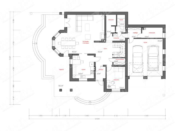 Мы можем вносить любые изменения в проект по Вашему пожеланию и адаптировать его с учетом конкретных геолого-топографических и климатических условий, за дополнительную плату.