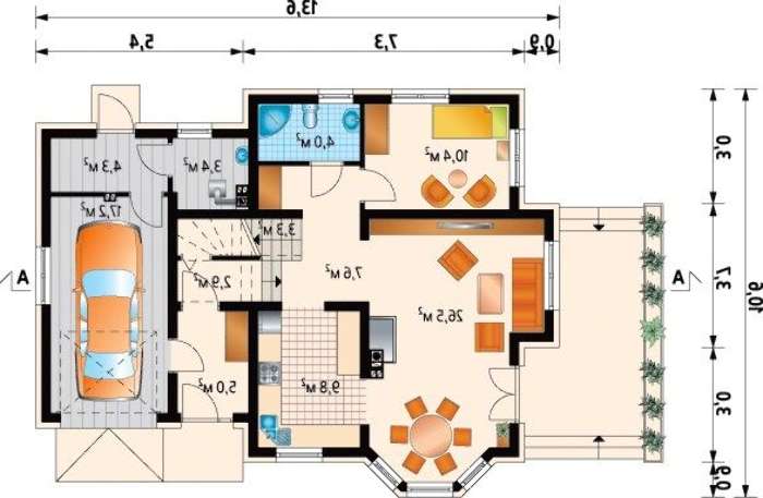 Проект коттеджа с мансардой Т-образной формы 4M3563f