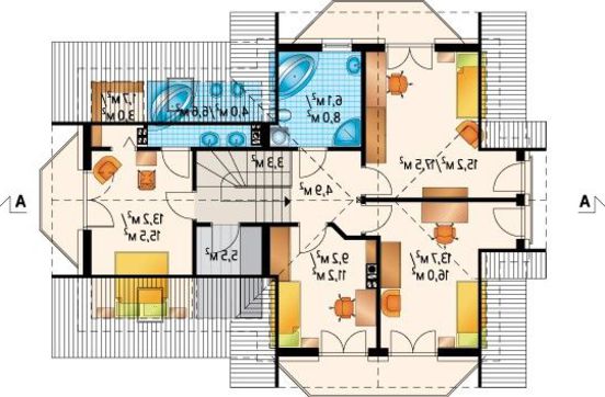 • 4M3563f Проект коттеджа с мансардой Т-образной формы