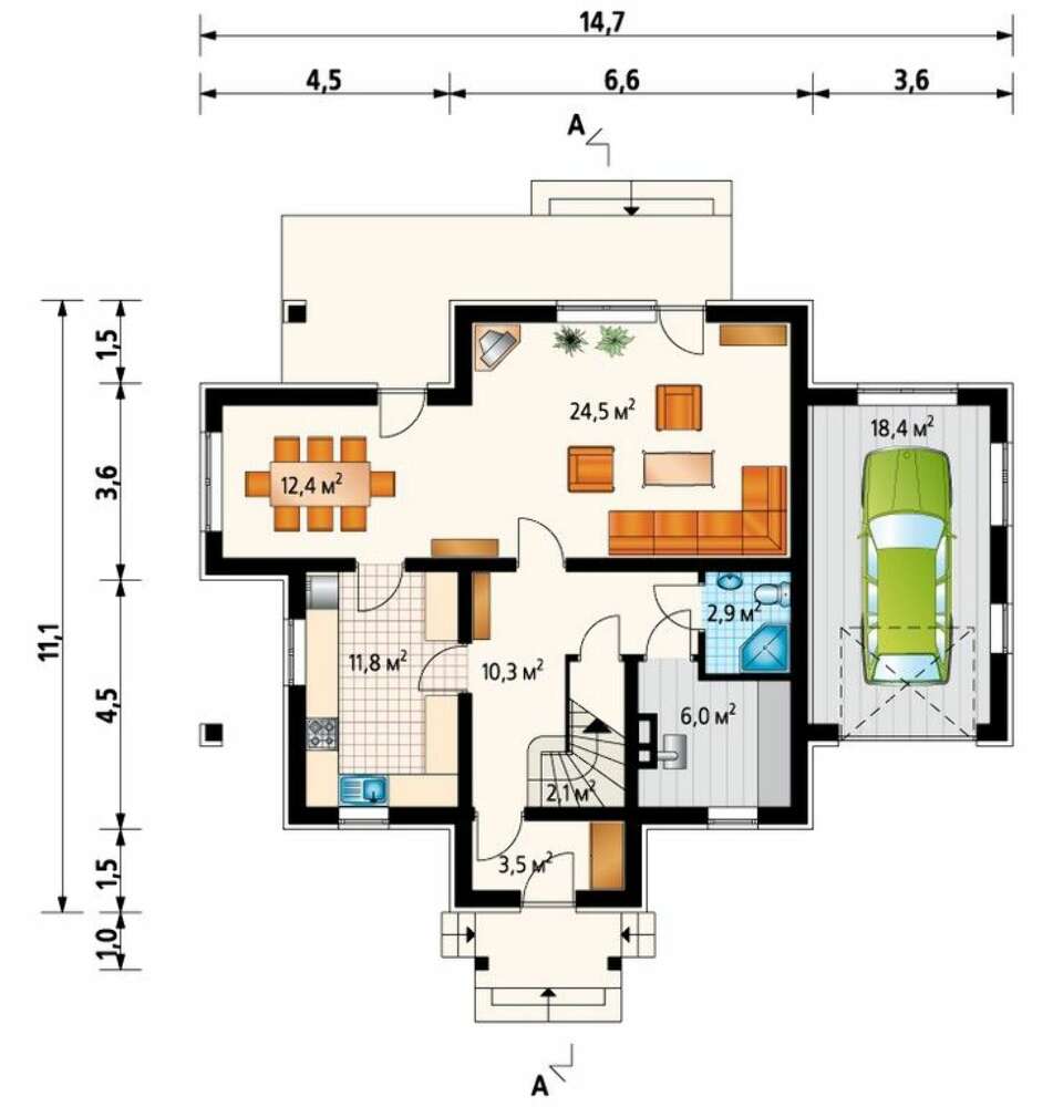 • фасады - показывают четкий вид дома с фронтальной стороны, с тыльной стороны и c боковых сторон;