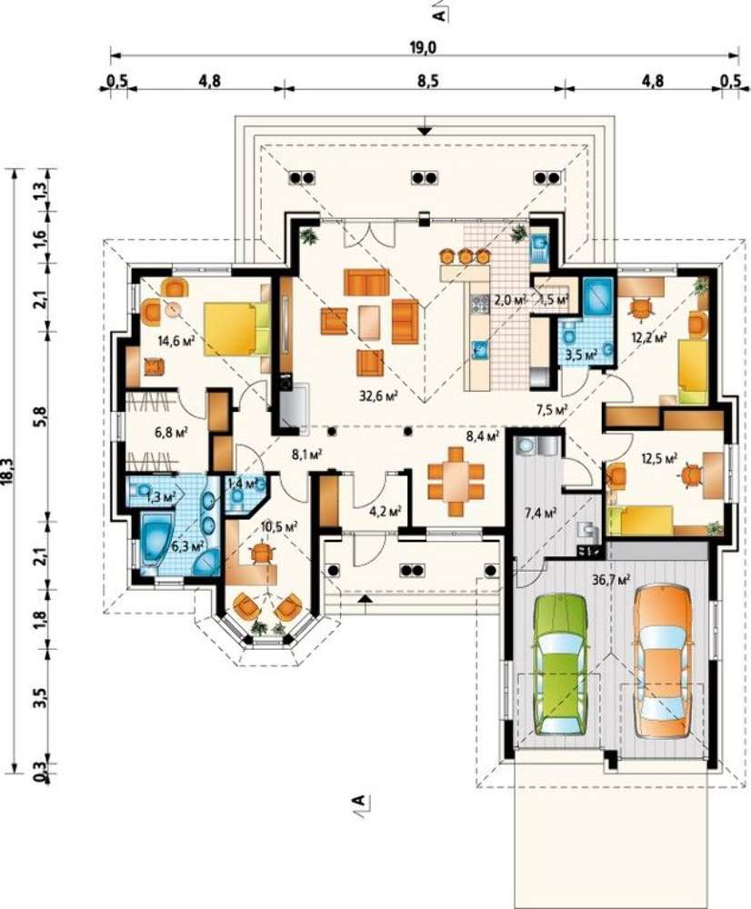 | Кровля: | керамическая черепица, металлочерепица, цементно-песчаная черепица |