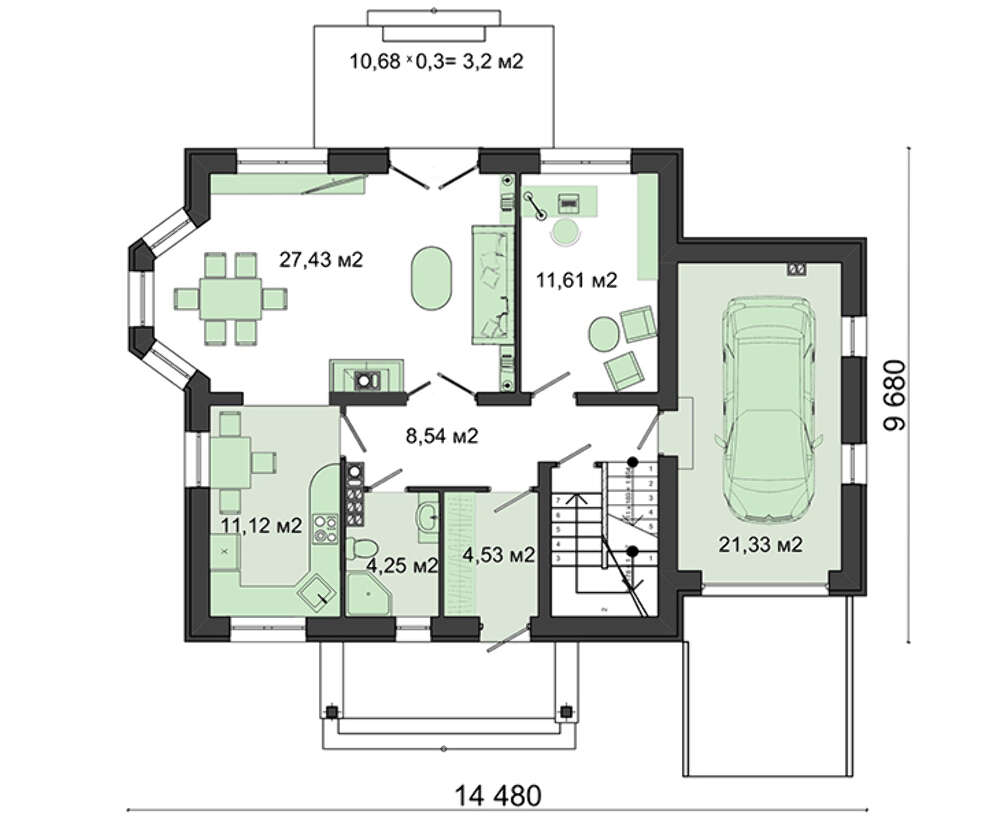 • фасады - показывают четкий вид дома с фронтальной стороны, с тыльной стороны и c боковых сторон;