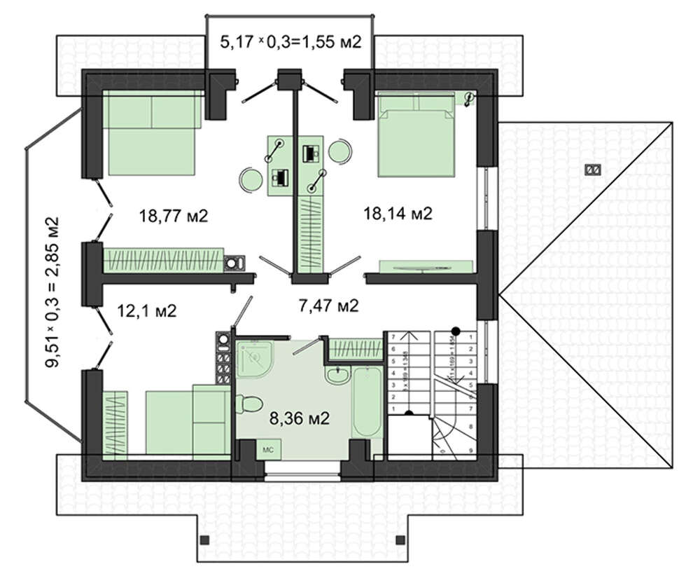 Проект красивого загородного дома с мансардой и балконом 4M3097