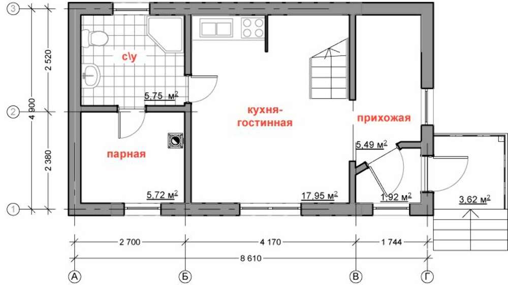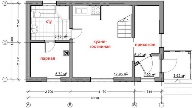 • Первый этаж: