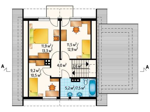Проект небольшого загородного дома с четырьмя спальнями